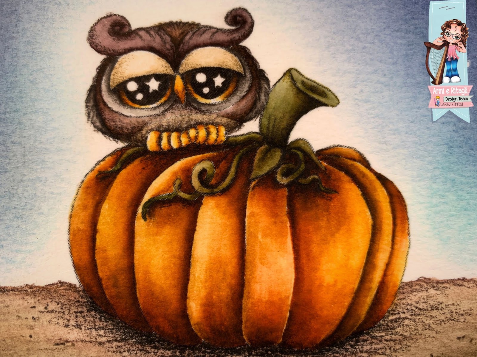 dall’effetto no-line. Ho quindi colorato gufetto e zucca con gli Zig Clean